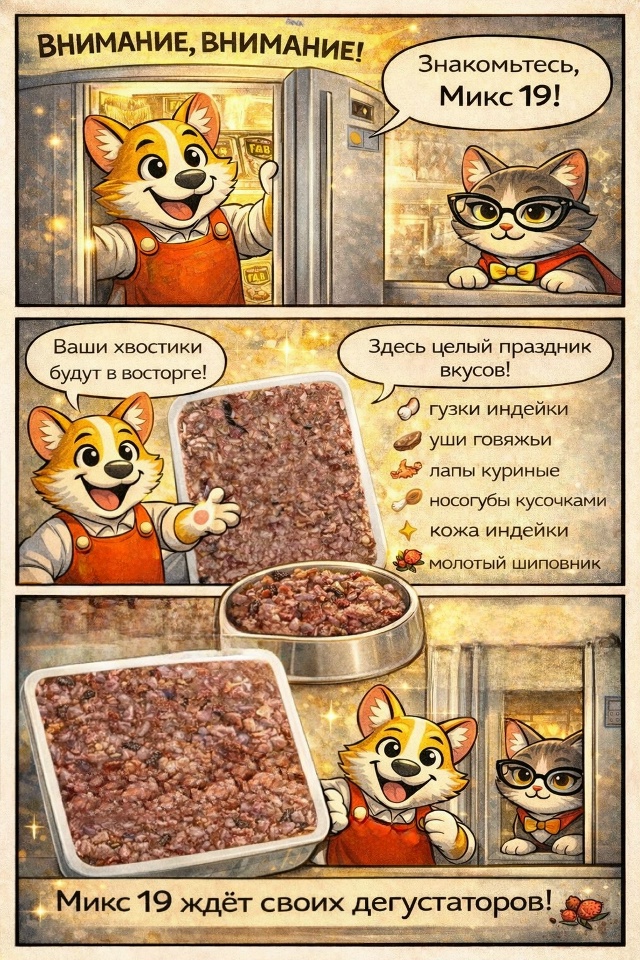 Микс 19 уже ждёт своих хвостатых дегустаторов. И, кажется, кто-то уже очень внимательно сторожит холодильник